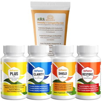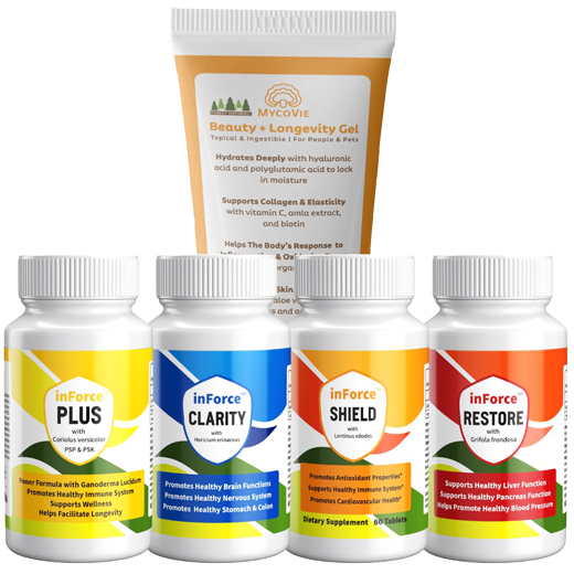 Products included are: inForce PLUS inForce Restore InForce Clarity inForce Shield MycoVie- Beauty + Longevity Gel