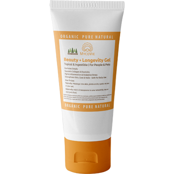 MycoVie Beauty + Longevity Gel is a revolutionary, dual-purpose gel designed to support beauty, skin, and graceful aging for both pets and people. Whether massaged into skin or scalp, or stirred into your morning smoothie or pet food, this plant-powered gel delivers a concentrated dose of nature’s most powerful and helpful ingredients, making it a truly universal approach to address aging and cellular renewal.